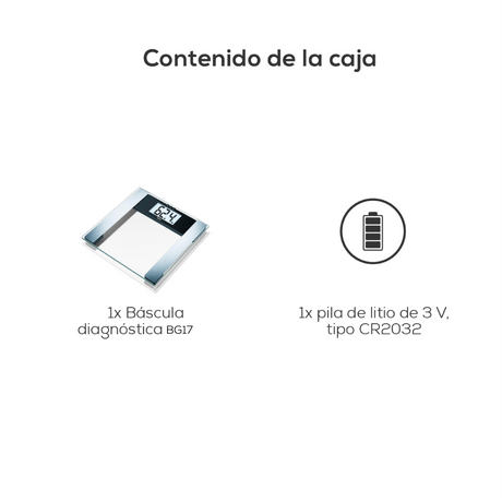 Báscula De Bioimpedancia Básica De Vidrio BG17 - Marca Beurer