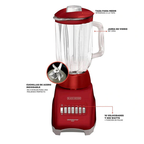 LICUADORA MOD. BL-1000RG 10 VEL. V/VIDRIO ROJA**