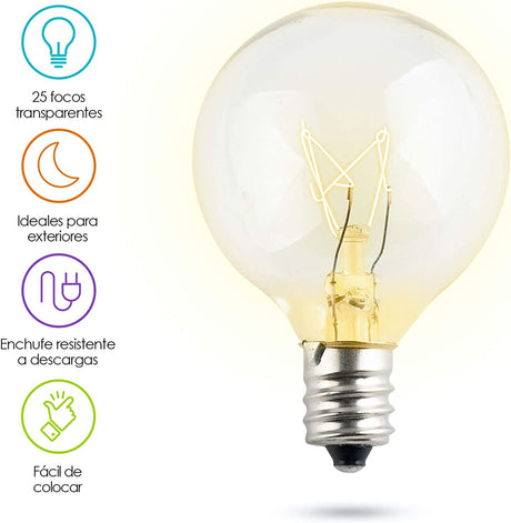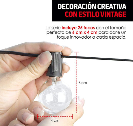 Serie de 25 Focos Vintage para Exterior, 7.5 m