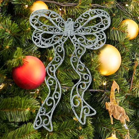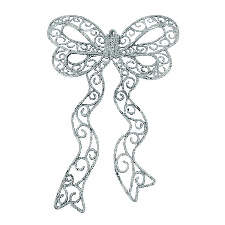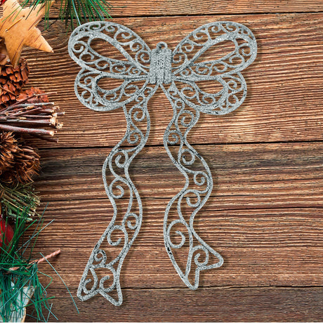 Decoración Colgante de Moño color Plata, 2 pzas
