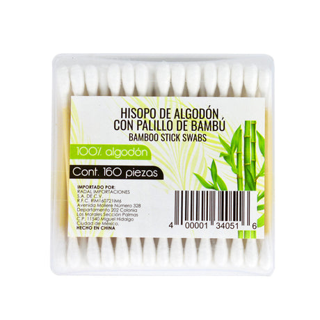 $ 3999Precio unitario /Agotado Caja con Hisopos Palillo de Bambú 100% Algodón 160 piezas