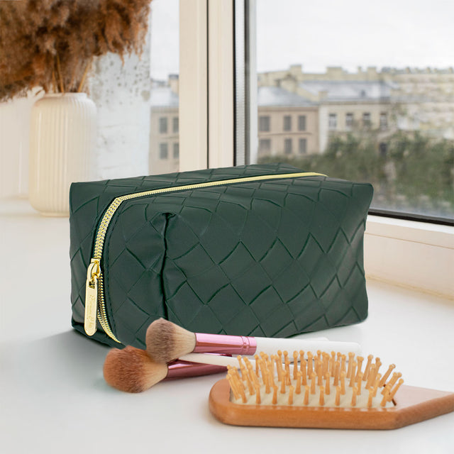 Cosmetiquera Acabado Tejido Vinipiel Verde 17x10x8cm