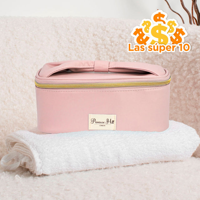 Cosmetiquera Tipo Maletín Rosa con Agarradera de Moño 17x10x8cm