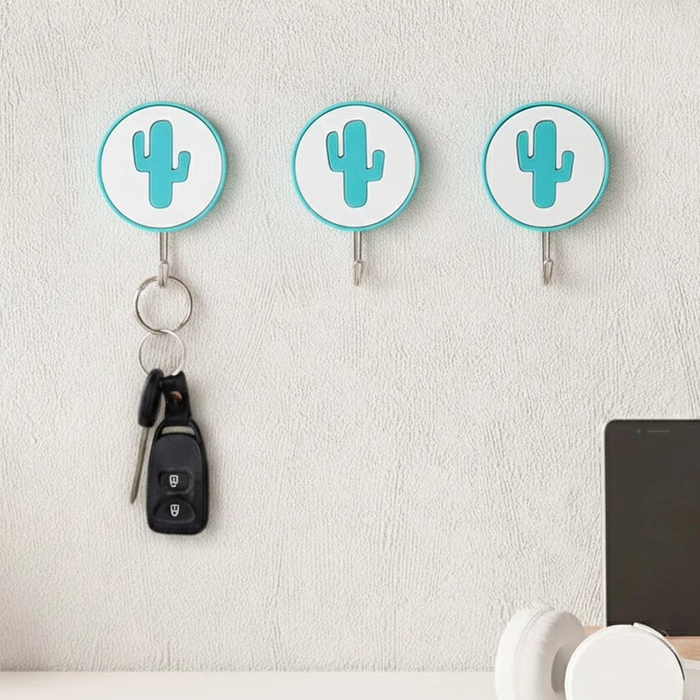 Colgadores Metálicos Autoadhesivos, Nopal, Color Azul, 3 pzas