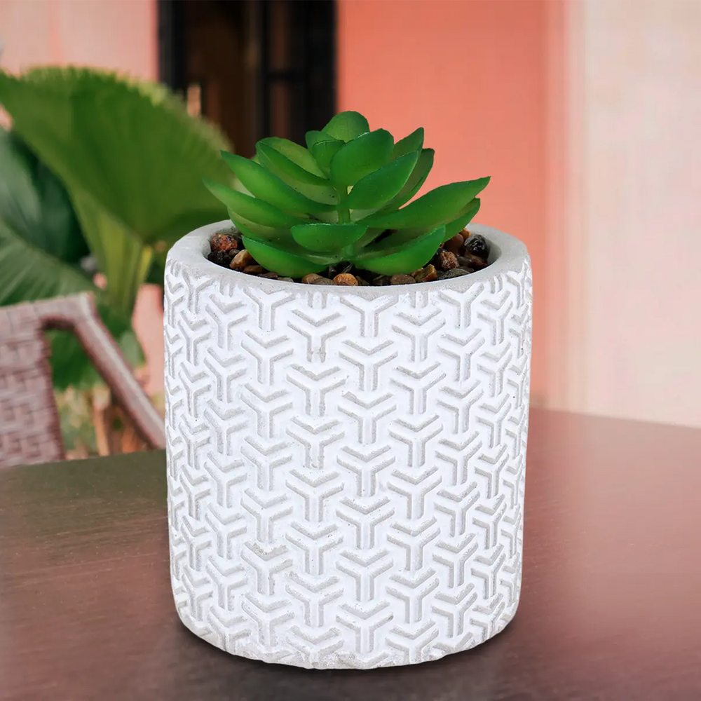 Maceta Cilindro, Diseño Textura, Color Gris