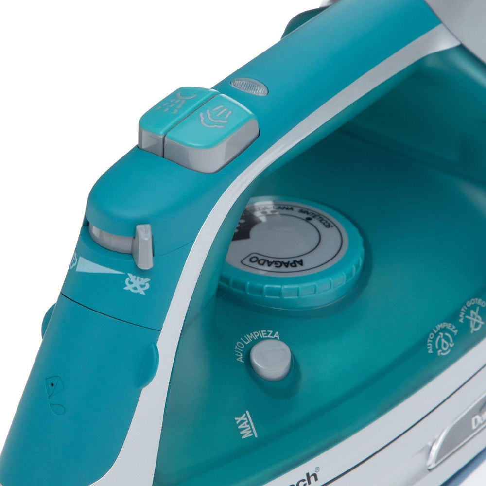 Su suela Durathon con recubrimiento de cerámica y antiadherente es 10 veces más duradera que las convencionales, garantizando un deslizamiento suave y sin dañar tus telas. Además, su potente vapor vertical y horizontal elimina arrugas con rapidez, incluso en prendas colgadas o cortinas.