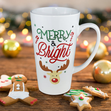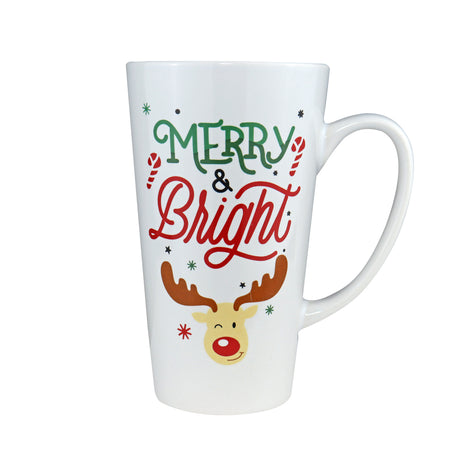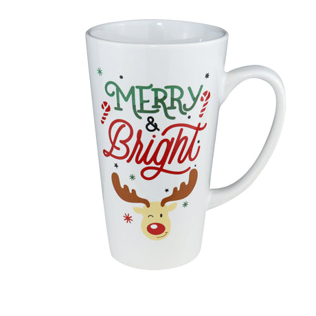 Taza Navideña de Cerámica color Blanco, Merry & Bright