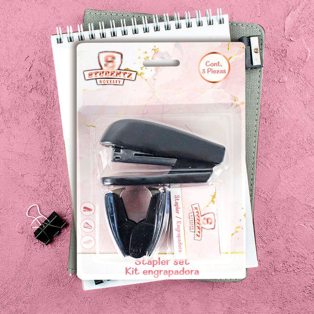 - Incluye 1 engrapadora grande, 1 mini engrapadora y una caja de grapas.