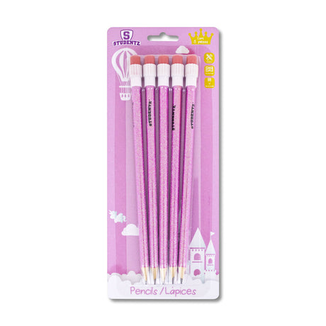 Paquete Lápices Diseño Glitter Princesa Rosa 5 pz.