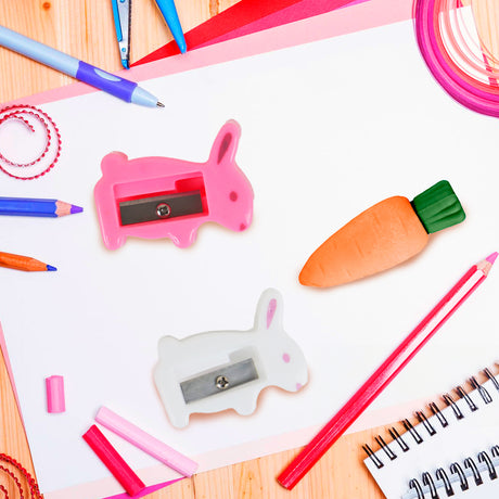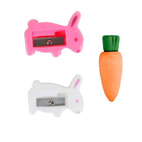 Set de Sacapuntas Conejo + Gomas Zanahoria, 6 pzas