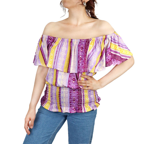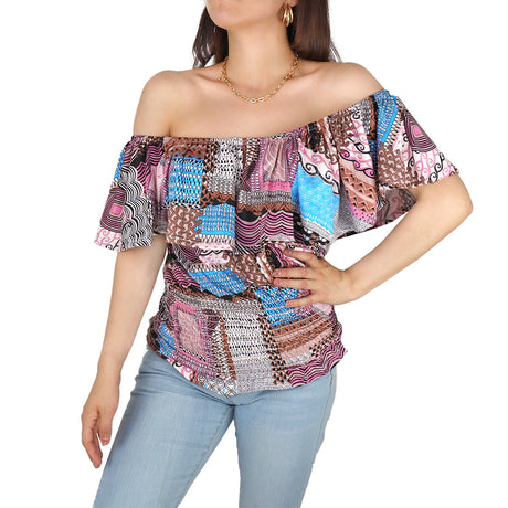 Blusa Campesina para Dama, color Rosa con Amarillo