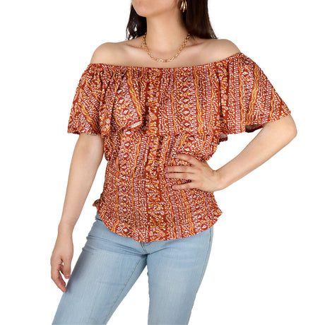 Conjunto de Blusa Tipo Campesina y Falda para Dama, color Vino con Beige