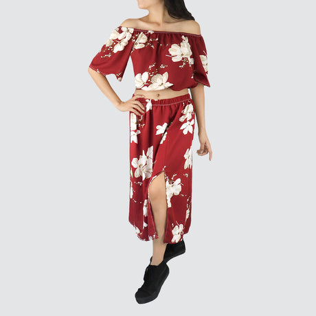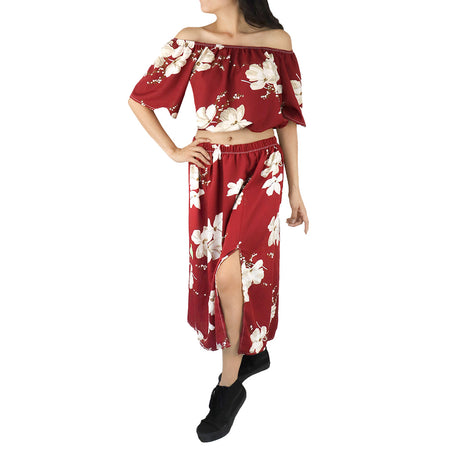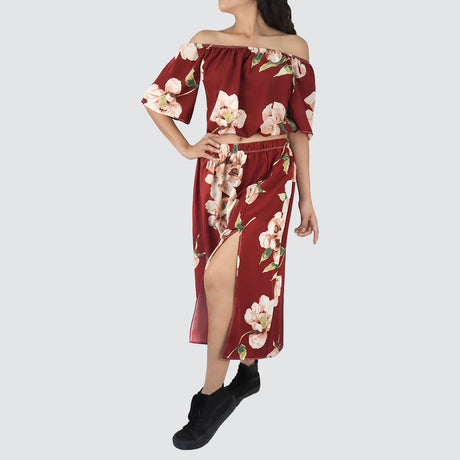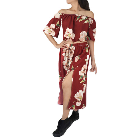 Conjunto de Blusa Tipo Campesina y Falda para Dama, color Vino