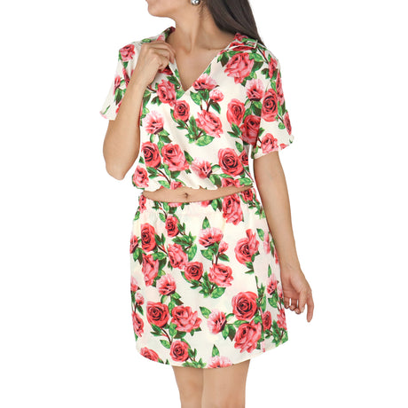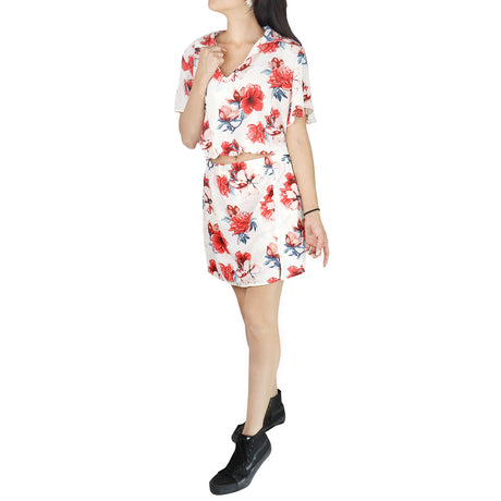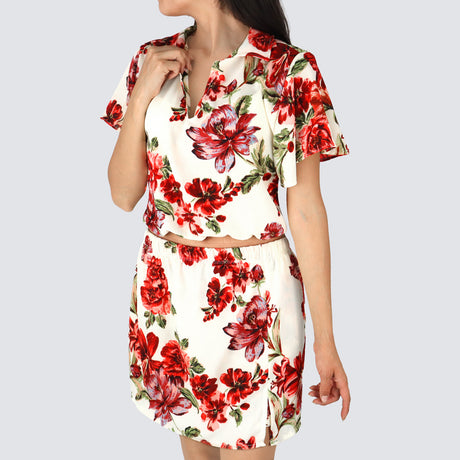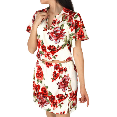 Conjunto de Blusa y Short Falda para Dama, color Blanco con Rojo