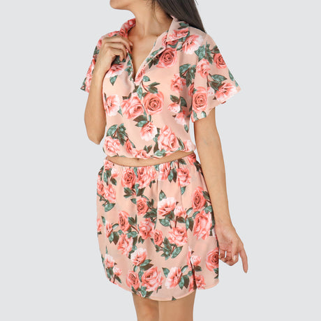 Conjunto de Blusa y Short Falda para Dama, color Coral