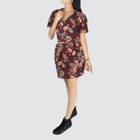 Conjunto de Blusa y Short Falda para Dama, color Vino
