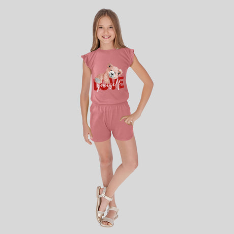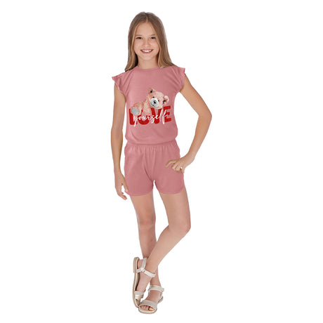 Conjunto de Blusa con Short color Rosa para Niña, Love Yourself
