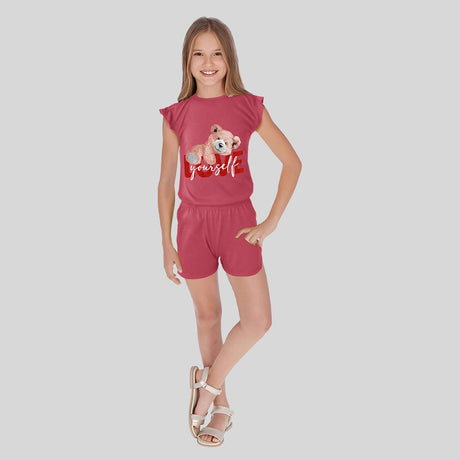 Conjunto de Blusa con Short color Coral para Niña, Love Yourself