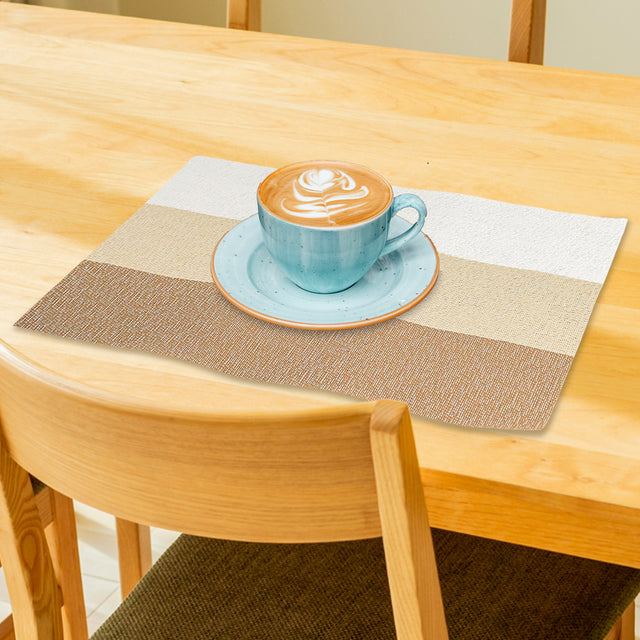 Mantel individual tejido con materiales de PVC, resistentes al calor, al deterioro y antideslizantes.