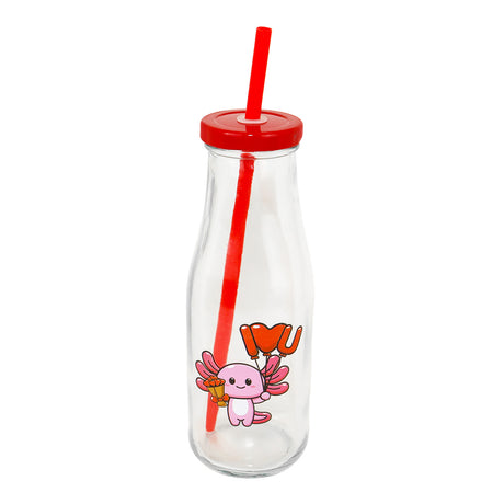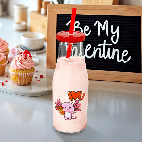 $ 6999Precio unitario /AgotadoBotella de vidrio decorada para San Valentín, Diseño Ajolotito