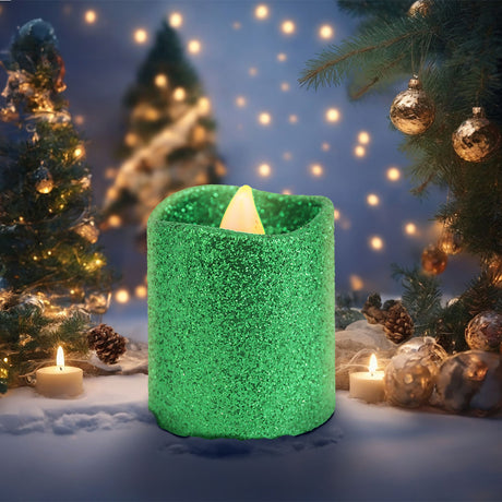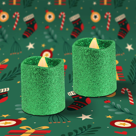 Set de 2 Velas LED Circulares color Verde para Decoración Navideña