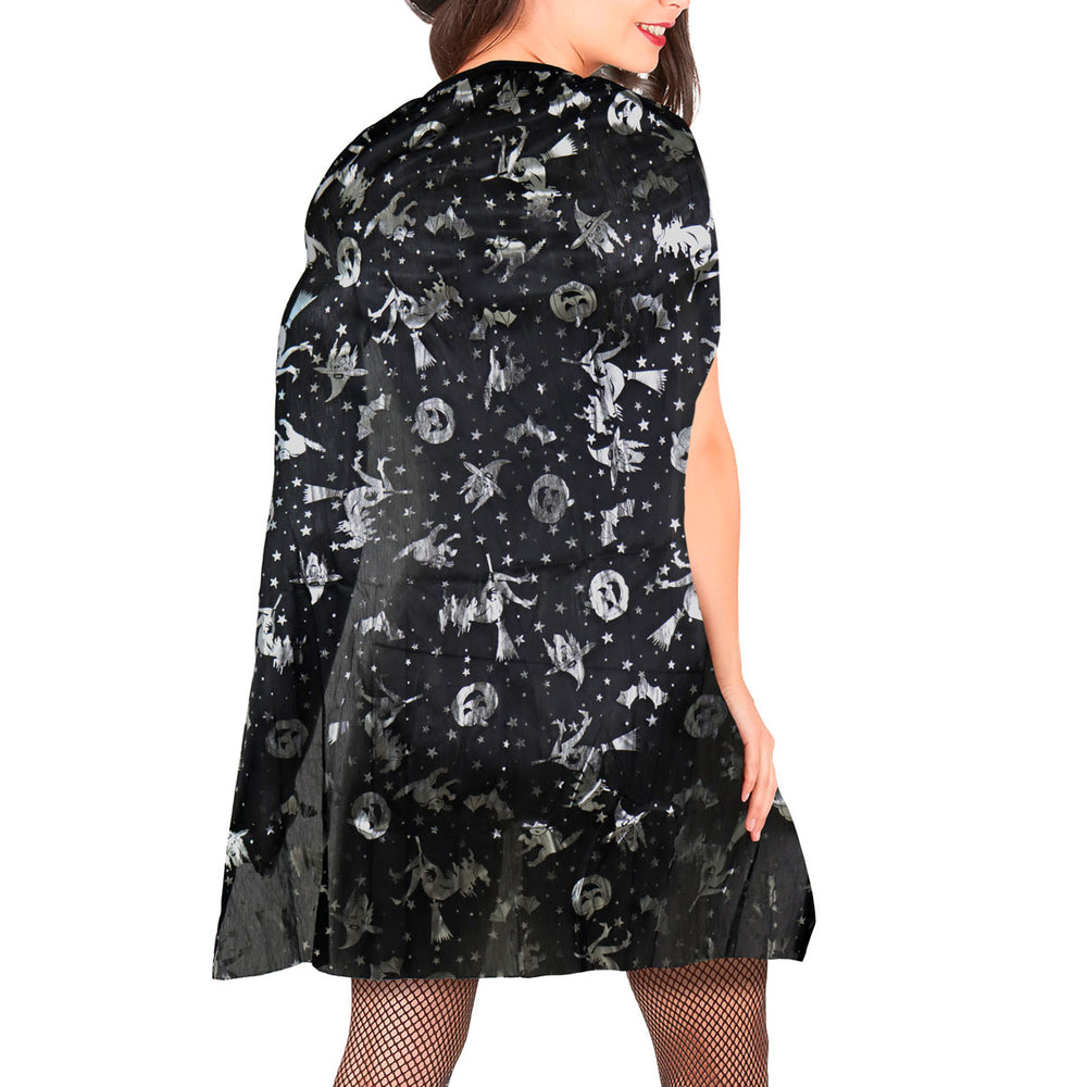 Capa color negro con patrón de bruja para disfraz de Halloween