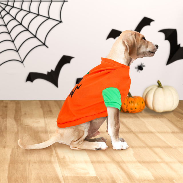 - Traje naranja con estampado de calabaza para perrito