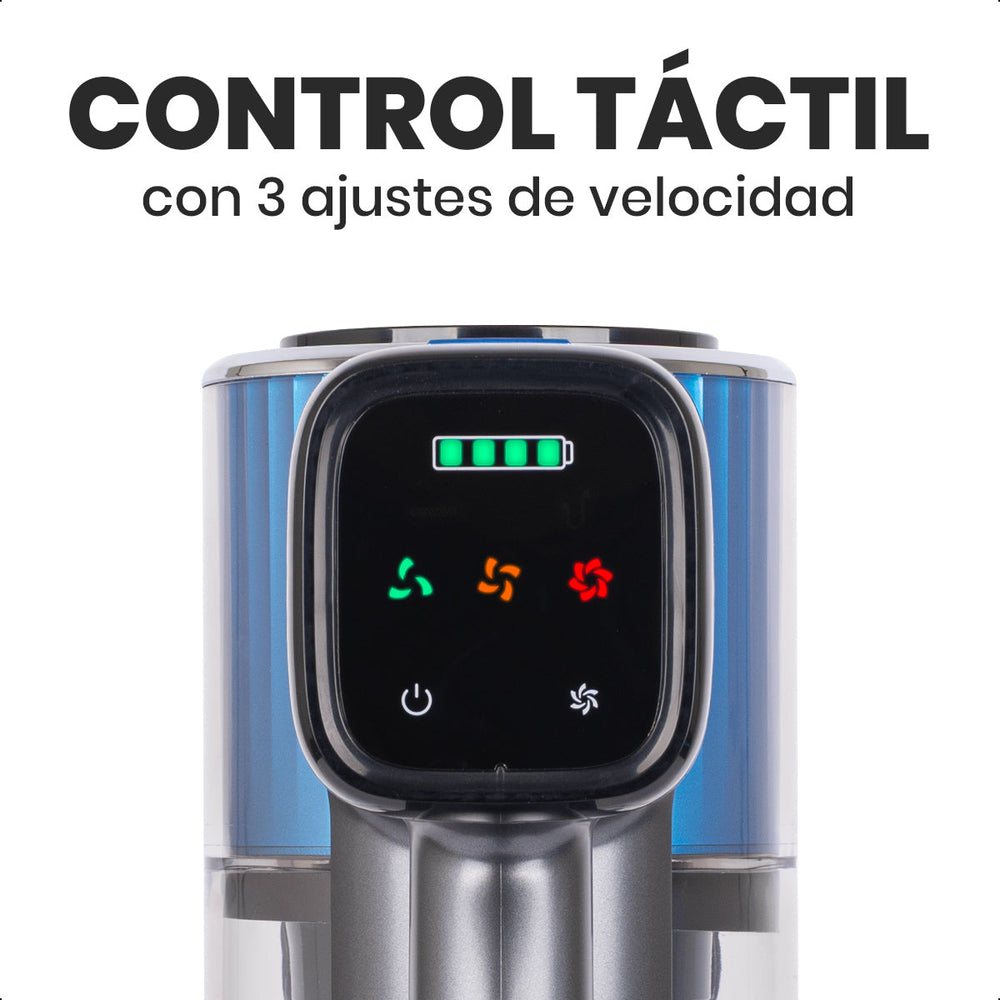 Su depósito de 400 ml y el sistema de doble filtración HEPA + metálico capturan partículas finas y polvo, proporcionando un aire más limpio. La pantalla digital muestra el nivel de batería y el modo seleccionado, brindando un control total durante la limpieza.