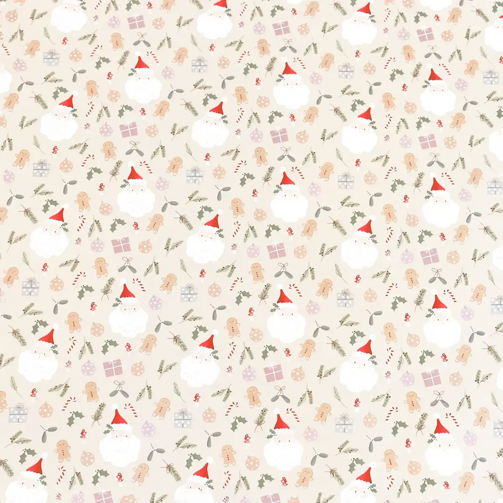 Papel para Envolver Regalos Navideño, Santa Claus, Color Beige