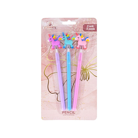 Lapiceros Tipo Pencil Unicornio con 3 Pza.