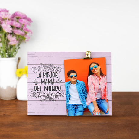 Marco de Madera para Fotos con Clip de Metal "La mejor mamá del mundo"
