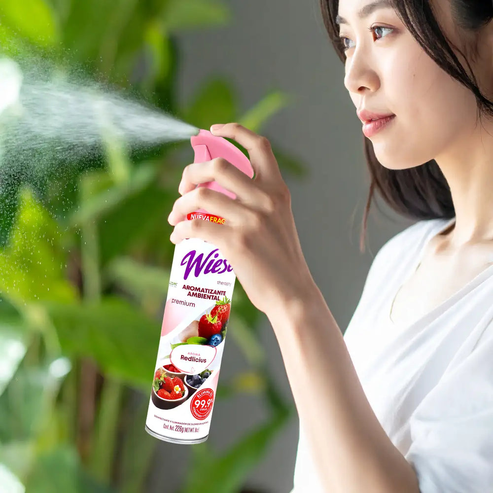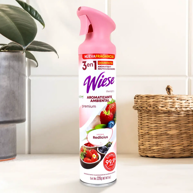 Mantén tu espacio siempre fresco y armonioso con el poder de Wiese. Su fragancia crea un ambiente cálido y agradable, mientras elimina lo que no deseas en el aire.