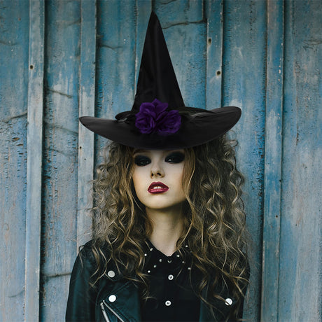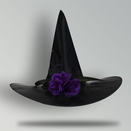 Sombrero color Negro con Flores para Disfraz de Bruja