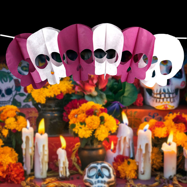 - Decora con un espeluznante banner de calaveras hechas de material tipo cartón delgado.