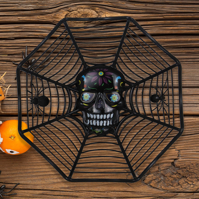 - Este bowl con un espeluznante diseño de telaraña y calavera es la adición perfecta para tu mesa de Halloween.