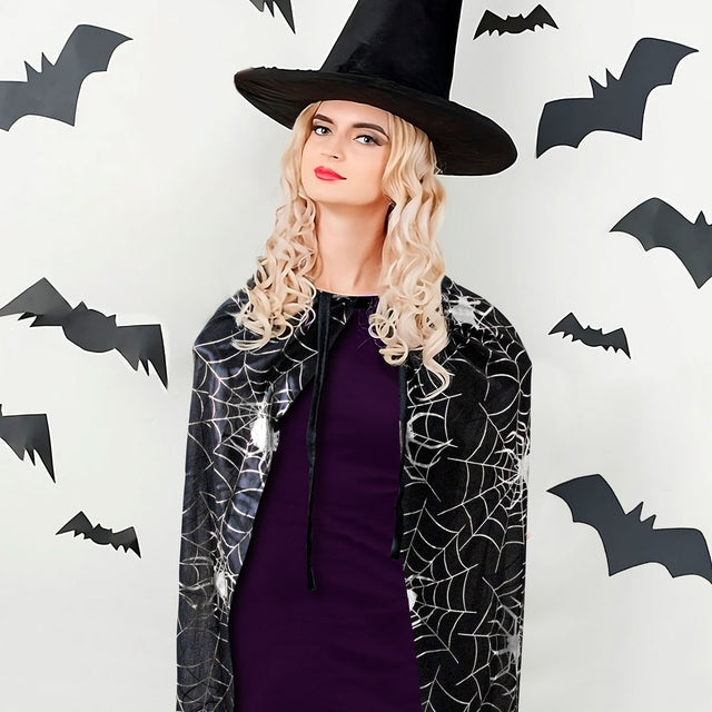 Capa color Negro con Telarañas Plateadas para Disfraz de Halloween