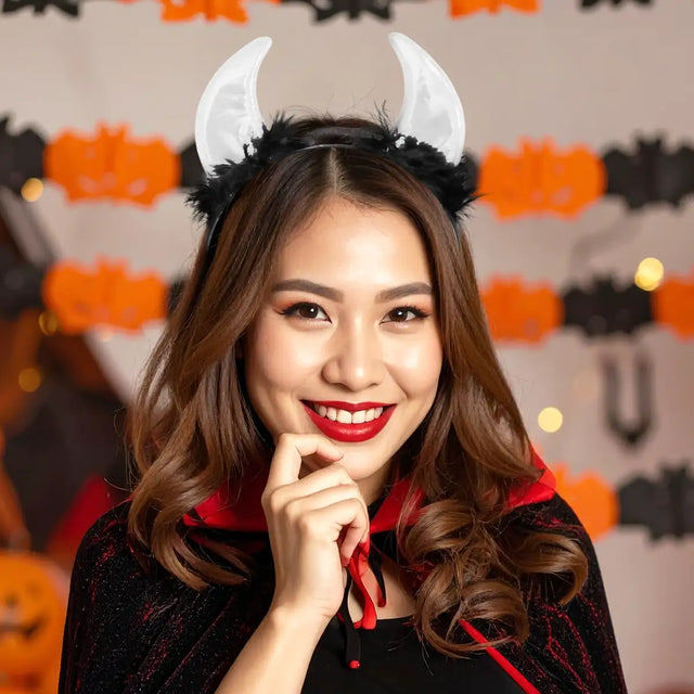 - Diadema con cuernos de diablo, perfecta para fiestas y celebraciones de Halloween.