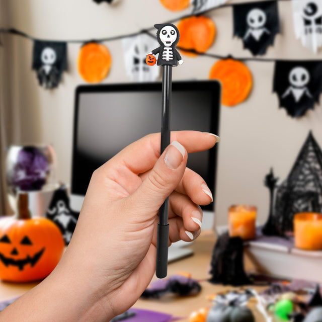 - Añade un toque espeluznante a tu escritura con esta pluma de gel de diseño único.
