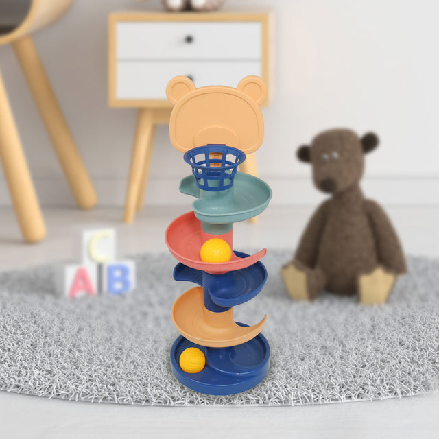 - Esta torre de caída y rodadura de bolas incluye bolas de actividad giratorias y rampas de varios colores que pueden lograr más placer a través del juego interactivo entre niños.