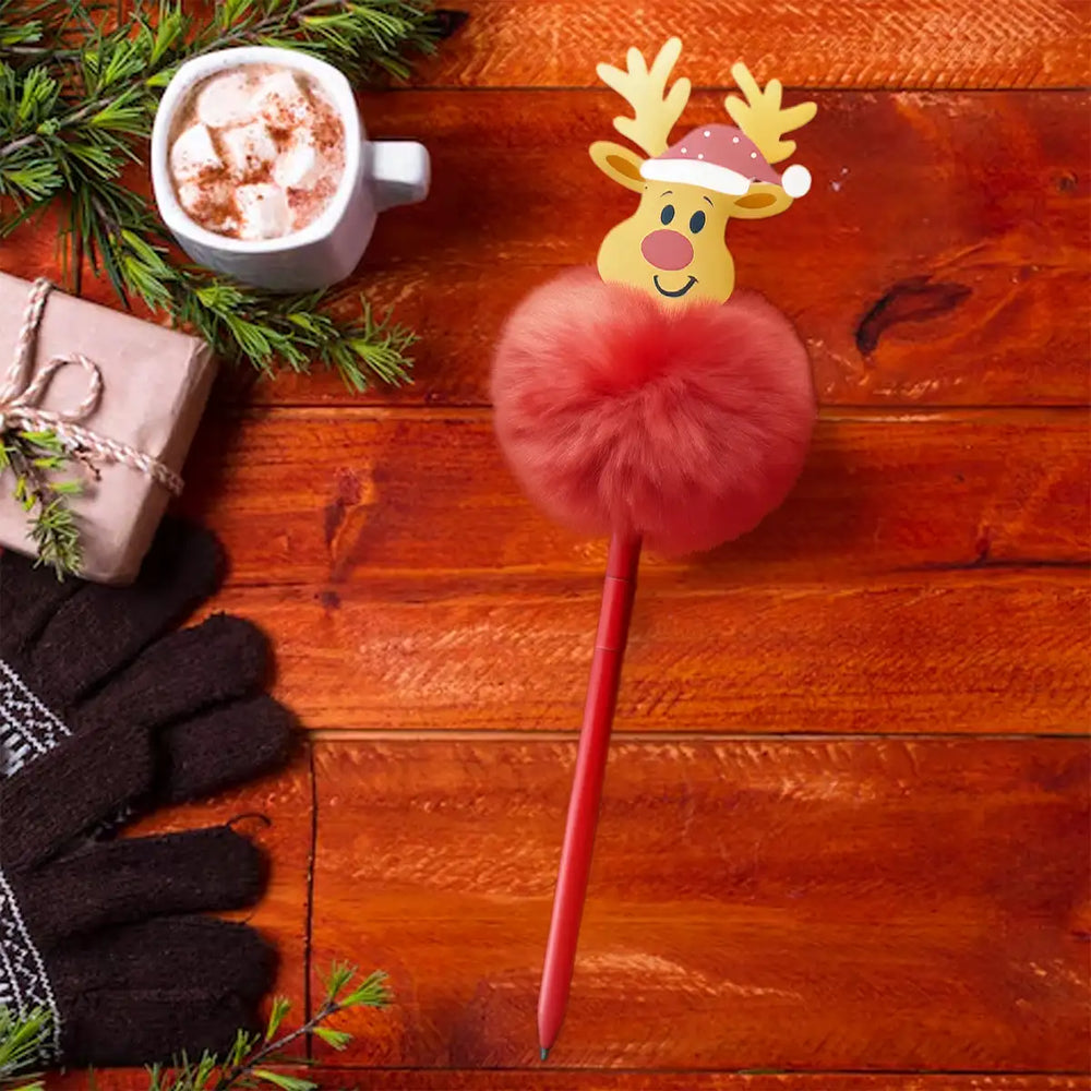 - Tiene un reno colorido que funciona como una cubierta de bolígrafo en la parte superior mientras escribes.