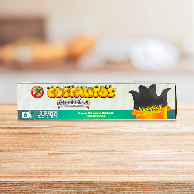 - Bolsas para basura en tamaño Jumbo, ideal para interiores como la cocina o cualquier otro espacio que genere grandes cantidades de basura.
