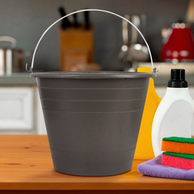 Almacena líquidos u ocupa para la limpieza, esta práctica cubeta de plástico ideal para 11 litros. Viene incorporada con una manija de plástico para un fácil agarre.