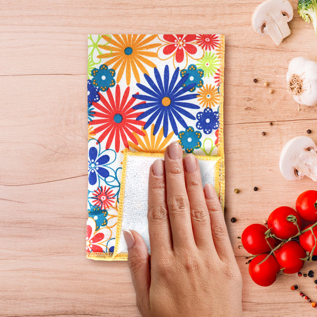 Set de 2 Trapos de Microfibra con Diseño de Flores