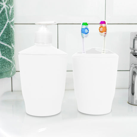$ 4999Precio unitario /AgotadoMuy poca disponibilidad (2 unidades)Set de Jabonera + Portacepillos, color Blanco