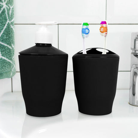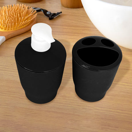 $ 4999Precio unitario /AgotadoSet de Jabonera + Portacepillos, color Negro