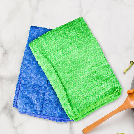 Set de 2 Trapos de Microfibra color Verde con Blanco, 30x30cm