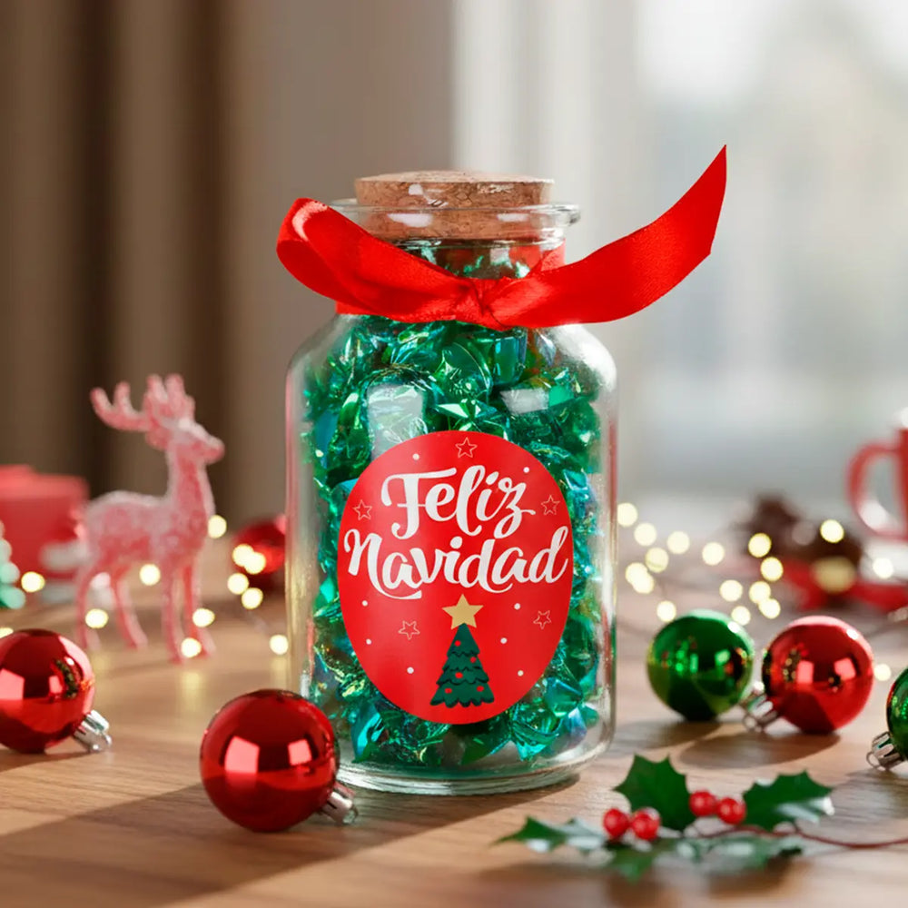 - Botella de cristal rellena con deliciosos caramelos