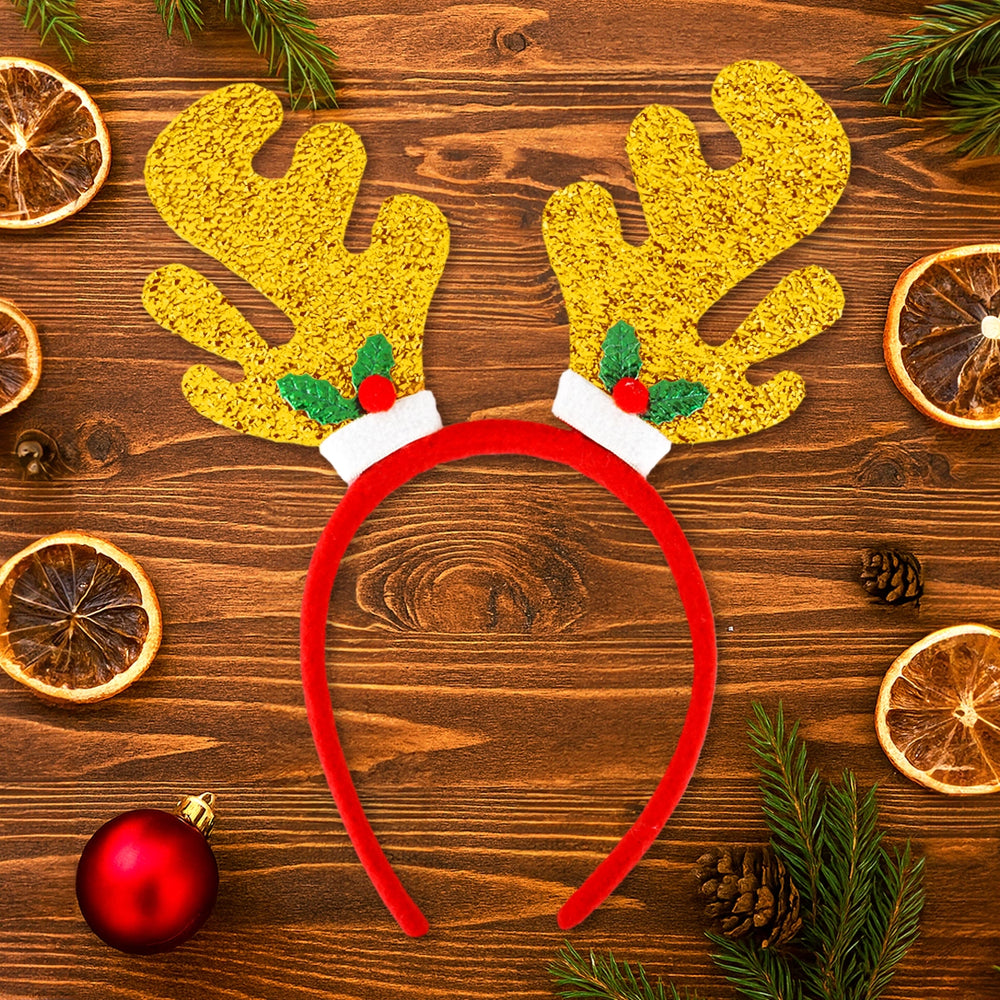 Diadema Navideña, Cuernos de Reno, Glitter, Color Oro