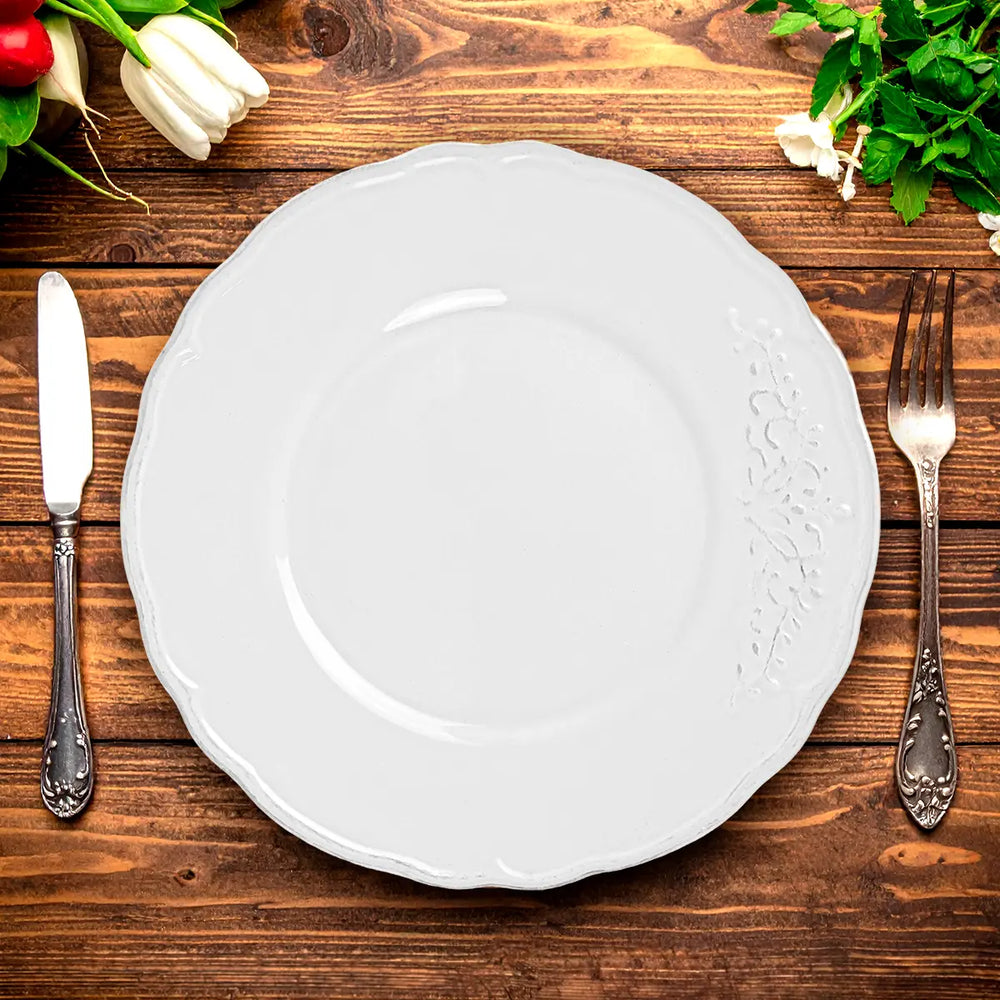 Plato, Cerámica, Diseño Floritura, Color Blanco