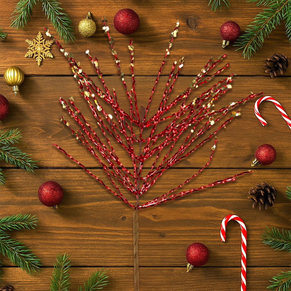 Vara de Follaje Artificial Navideña, Color Rojo